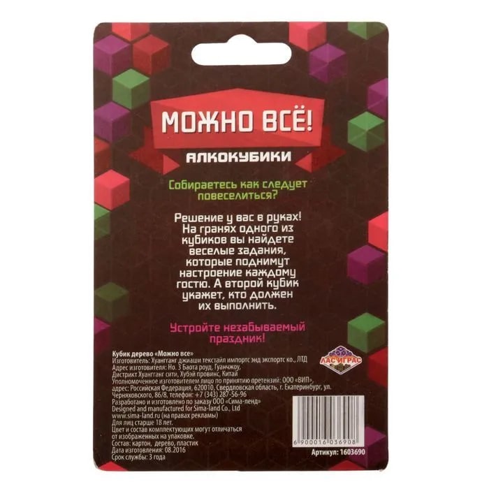 Купить кубик "можно все", алкокубики для принятия решений от 60 руб. с доставкой до пункта выдачи в Лысьве. Интернет магазин ДекаМаркет. Оплата при получении.