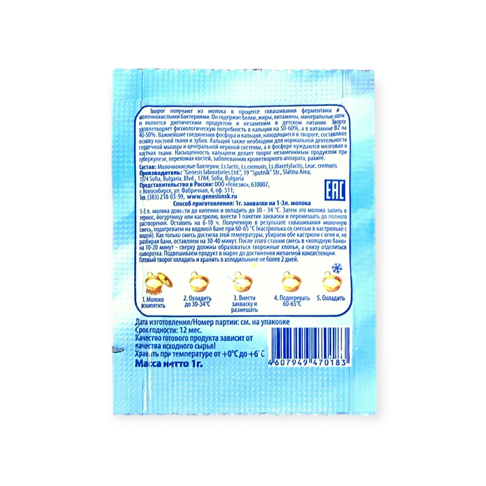Закваска Творожок Genesis, 1 пакет от 100 руб. с доставкой. Пункт выдачи в Лысьве. Интернет магазин по сыроделию. Всё всегда в наличии.